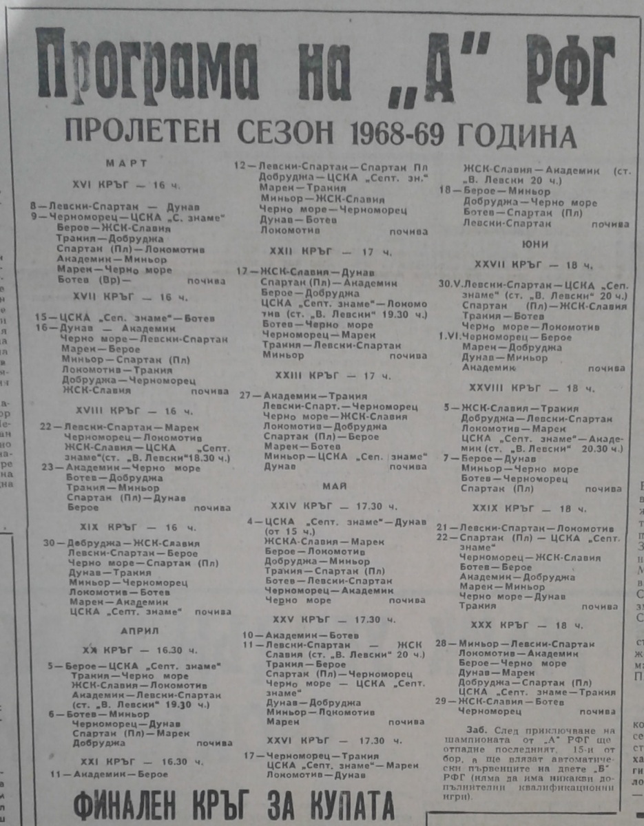 Чемпионат Болгарии 1968/69. Группа А