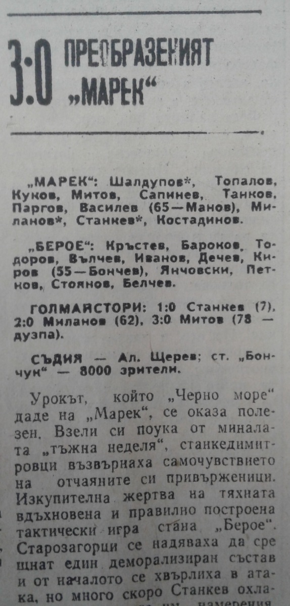 «Марек» Станке-Димитров - «Берое» Стара-Загора - 3:0
