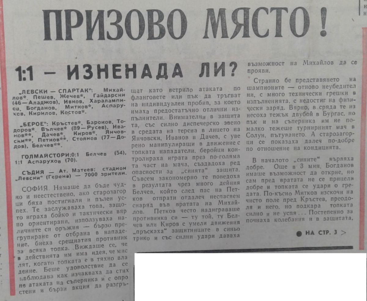 «Левски-Спартак» София - «Берое» Стара-Загора - 1:1