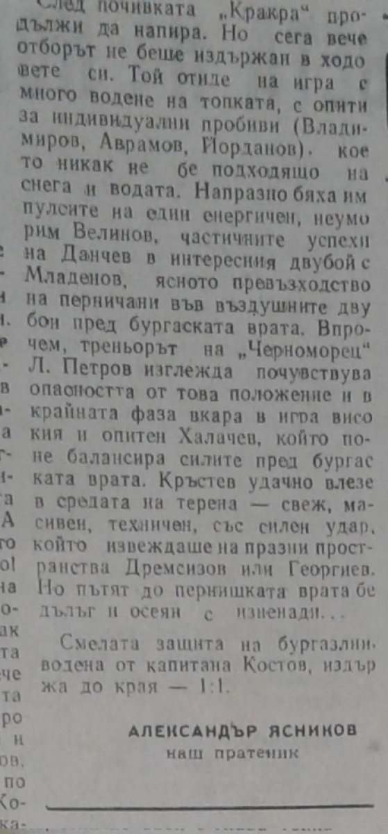 «Кракра-Пернишки» Перник - «Черноморец» Бургас - 1:1