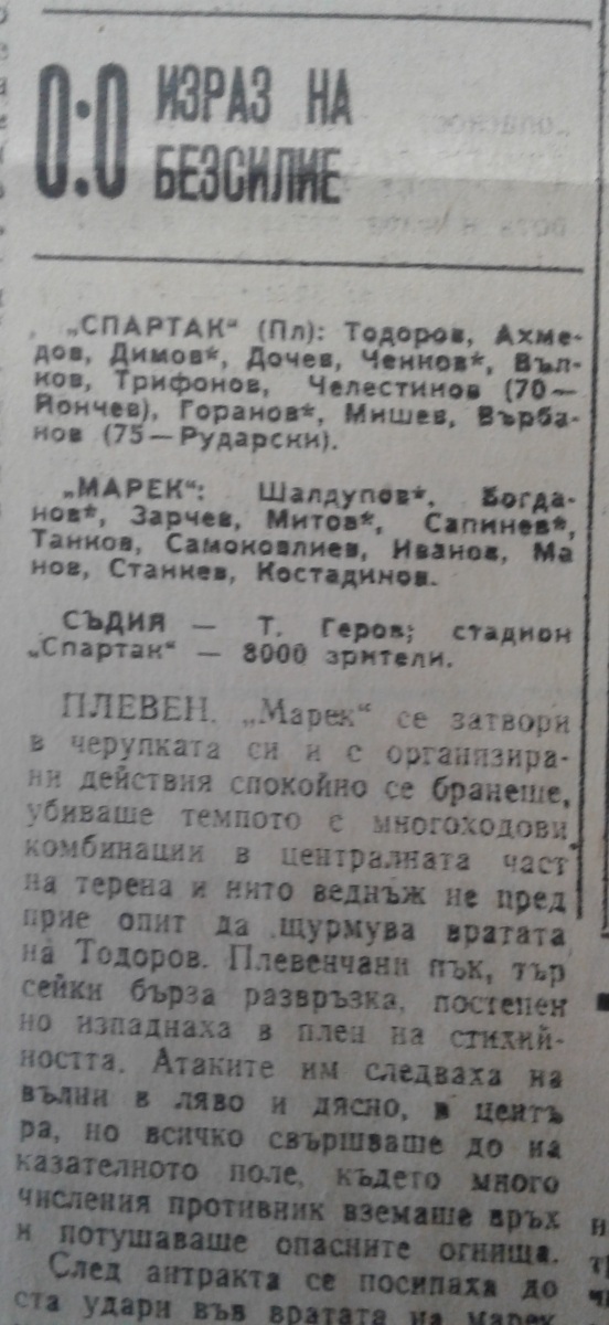 «Спартак» Плевен - «Марек» Станке-Димитров - 0:0