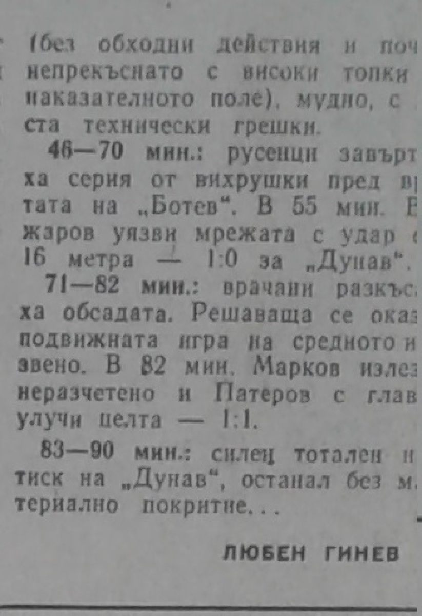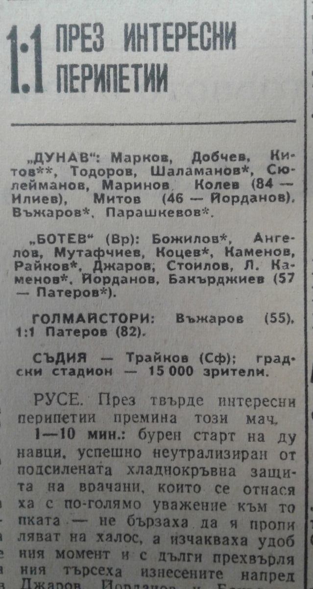 «Дунав» Русе - «Ботев» Враца - 1:1