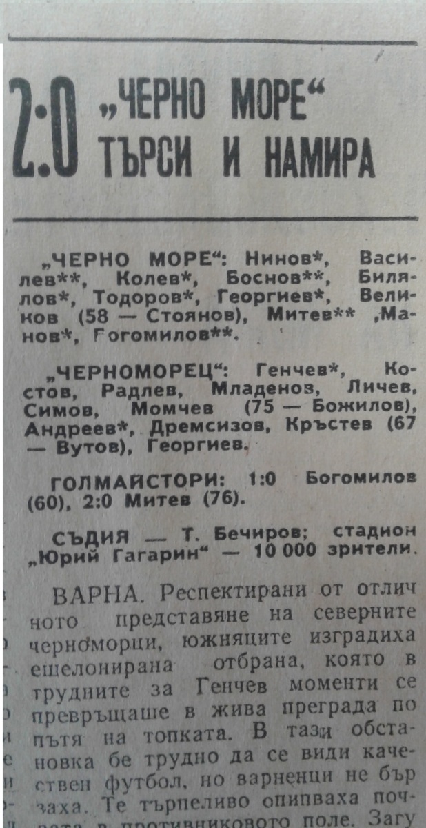 «Черно море» Варна - «Черноморец» Бургас - 2:0
