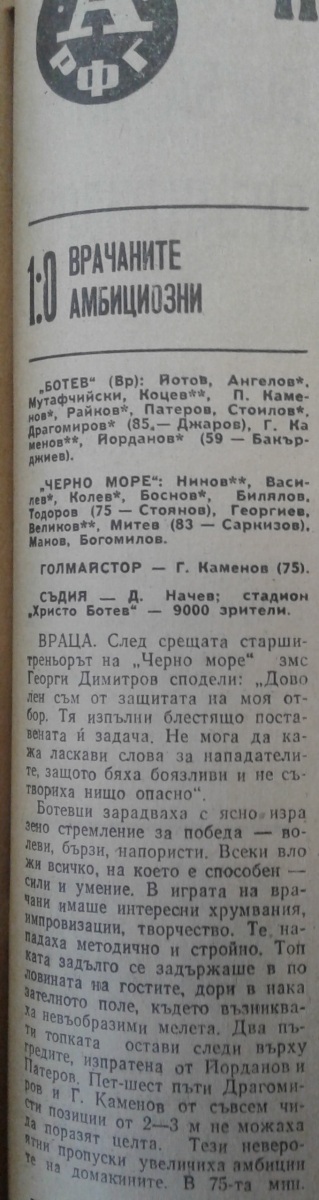 «Ботев» Враца - «Черно море» Варна - 1:0