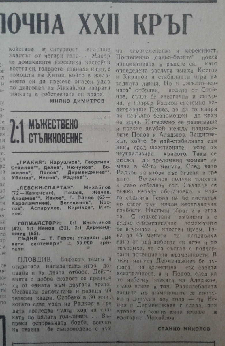 «Тракия» Пловдив - «Левски-Спартак» София - 2:1