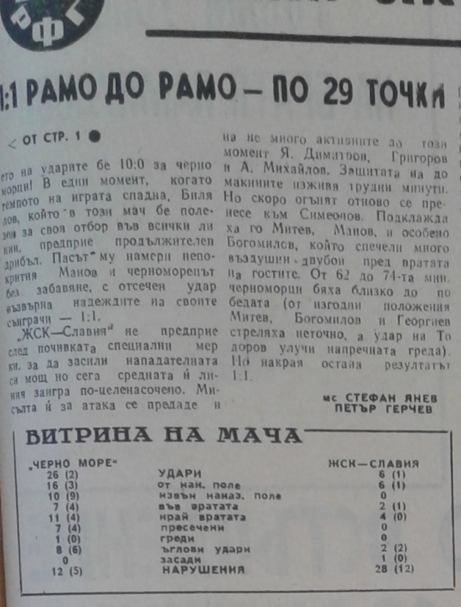 «Черно море» Варна - «ЖСК Славия» София - 1:1