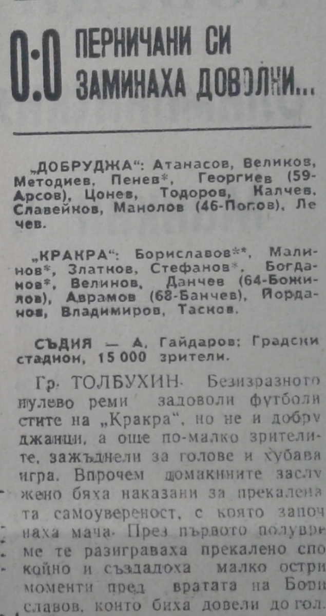 «Добруджа» Толбухин - «Кракра-Пернишки» Перник - 0:0