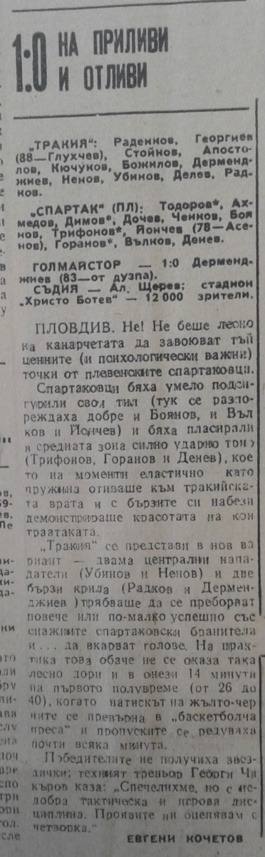 «Тракия» Пловдив - «Спартак» Плевен - 1:0