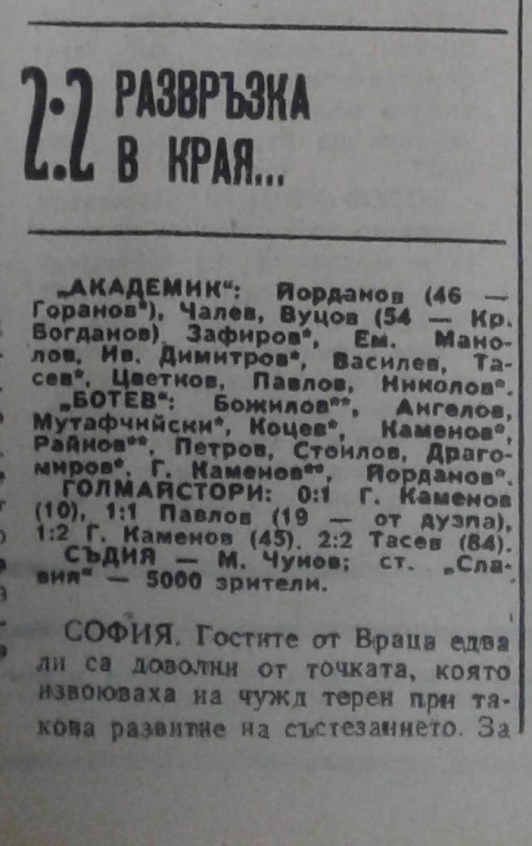 «Академик» София - «Ботев» Враца - 2:2