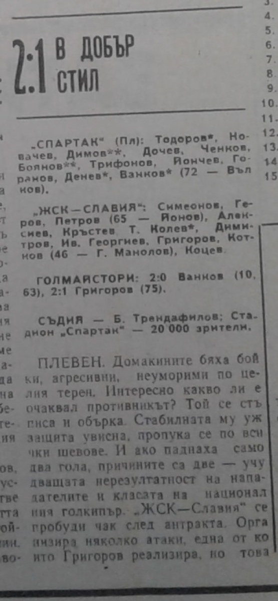 «Спартак» Плевен - «ЖСК Славия» София - 2:1
