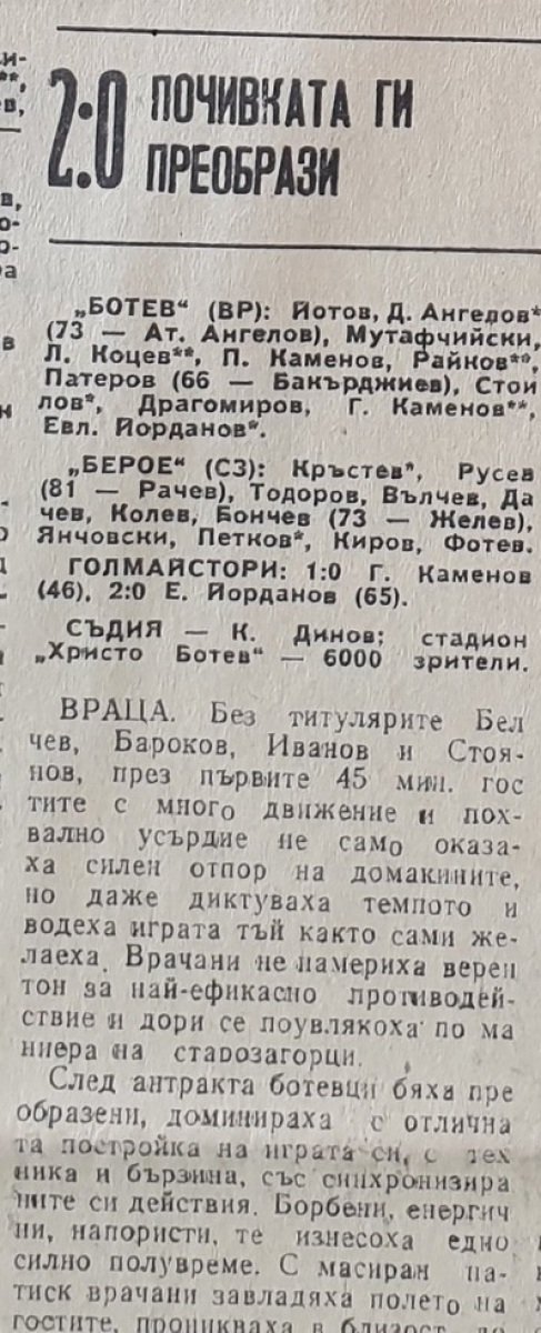 «Ботев» Враца - «Берое» Стара-Загора - 2:0