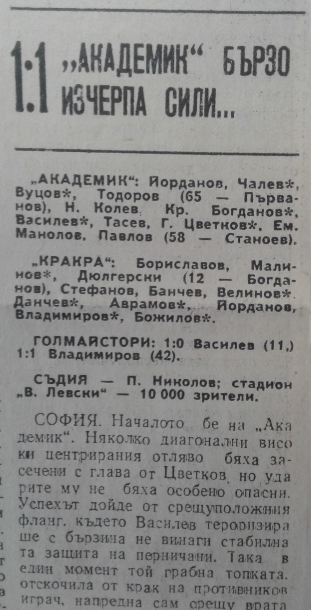 «Академик» София - «Кракра-Пернишки» Перник - 1:1