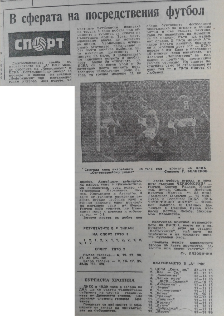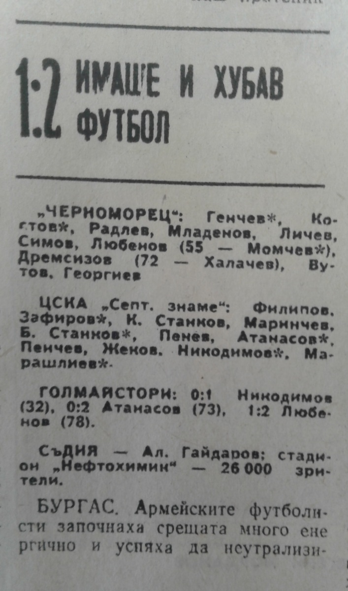 «Черноморец» Бургас - «ЦСКА Септемврийско Знаме» София - 1:2