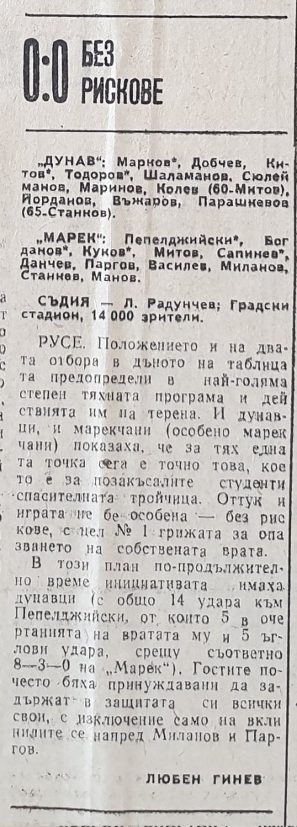 «Дунав» Русе - «Марек» Станке-Димитров - 0:0