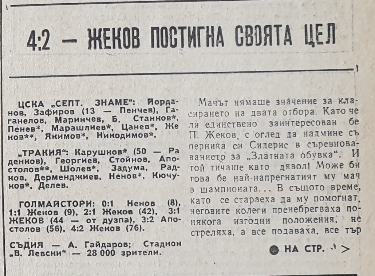 «ЦСКА Септемврийско Знаме» София - «Тракия» Пловдив - 4:2