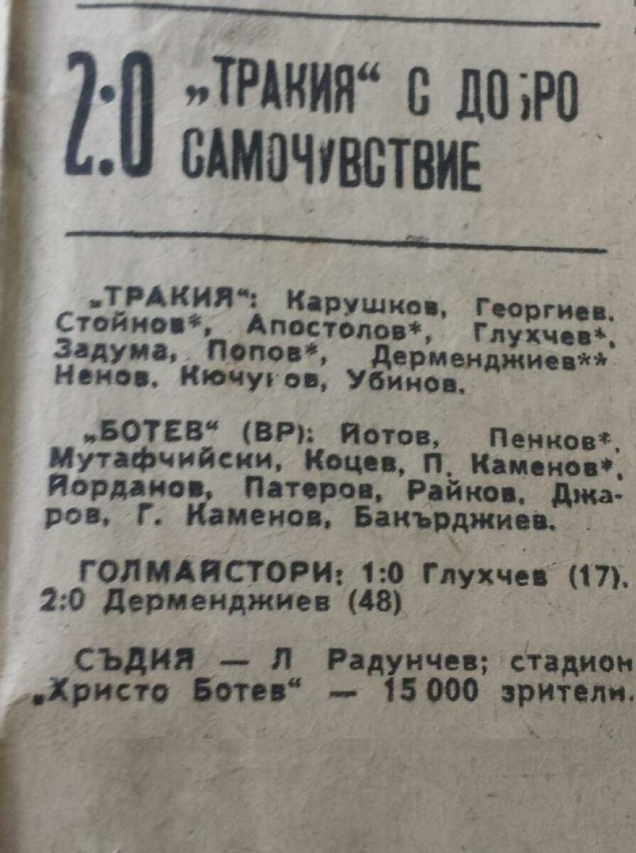 «Тракия» Пловдив - «Ботев» Враца - 2:0