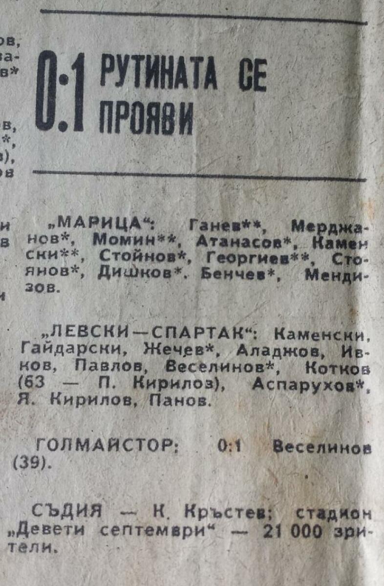 «Марица» Пловдив - «Левски-Спартак» София - 0:1