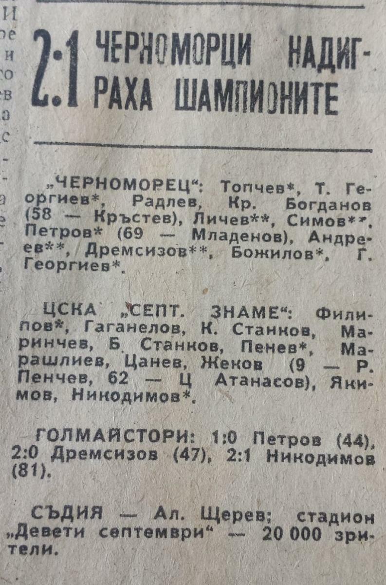 «Черноморец» Бургас - «ЦСКА Септемврийско Знаме» София - 2:1