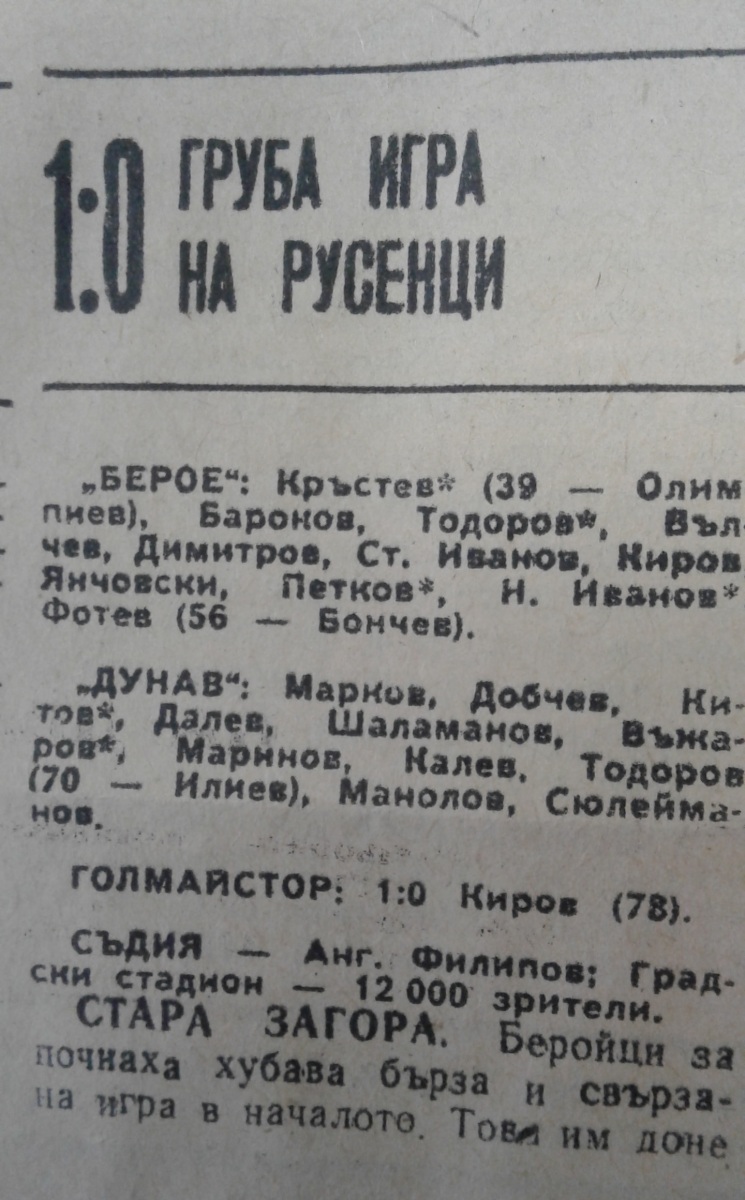 «Берое» Стара-Загора - «Дунав» Русе - 1:0