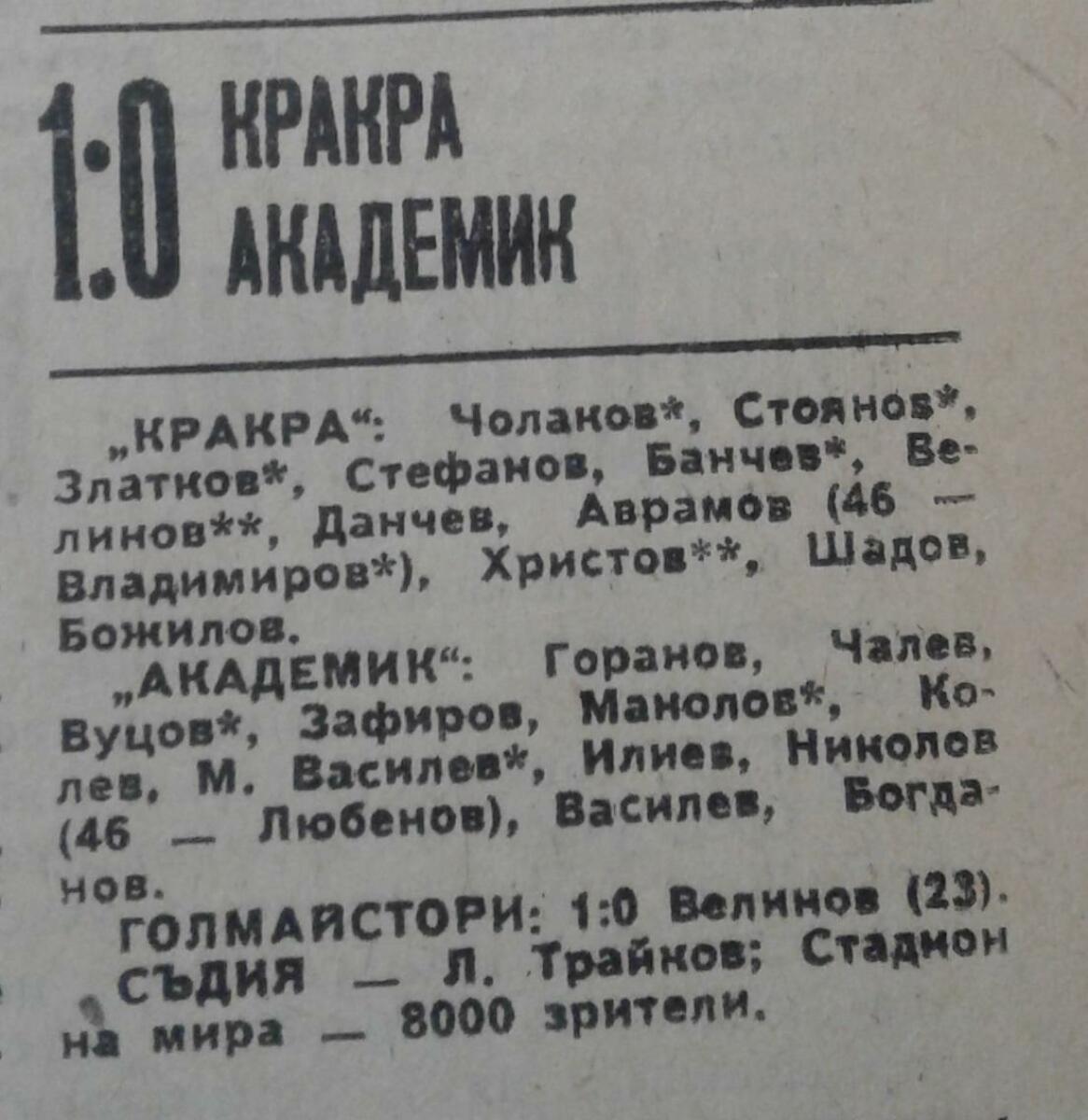 «Кракра-Пернишки» Перник - «Академик» София - 1:0