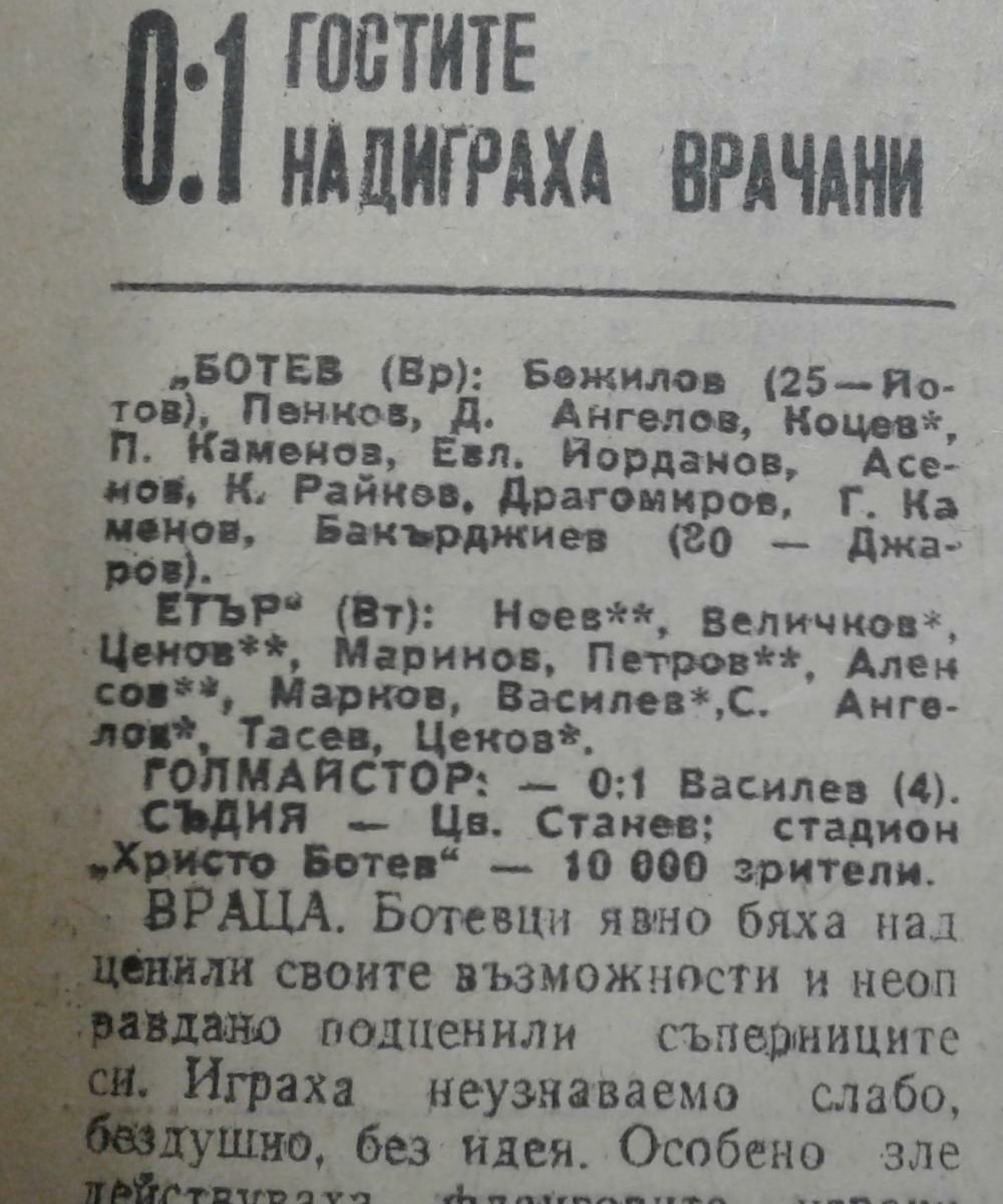 «Ботев» Враца - «Этыр» Велико-Тырново - 0:1