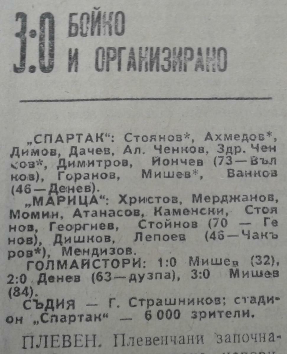«Спартак» Плевен - «Марица» Пловдив - 3:0