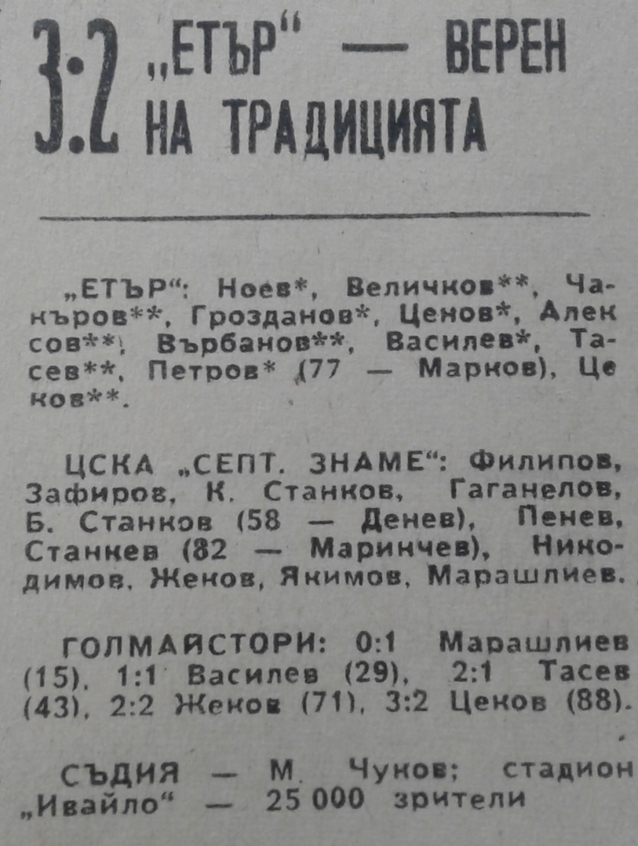 «Этыр» Велико-Тырново - «ЦСКА Септемврийско Знаме» София - 3:2