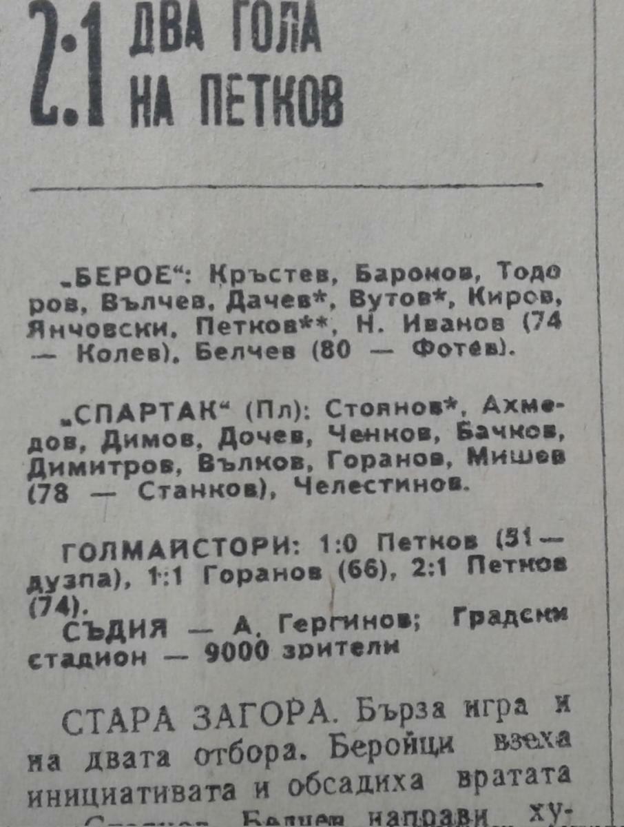 «Берое» Стара-Загора - «Спартак» Плевен - 2:1