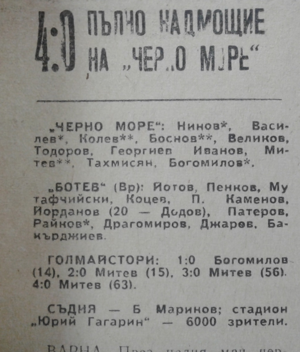 «Черно море» Варна - «Ботев» Враца - 4:0