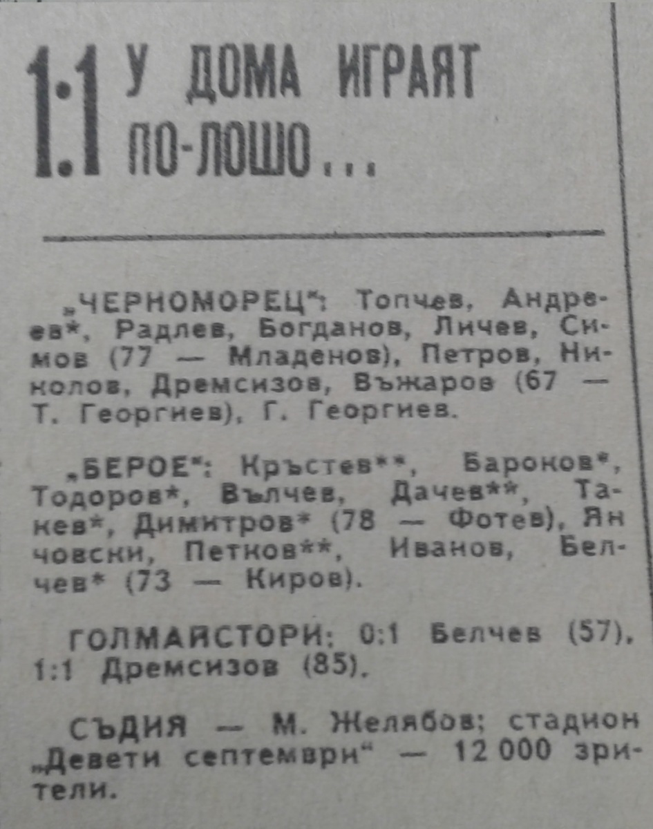 «Черноморец» Бургас - «Берое» Стара-Загора - 1:1