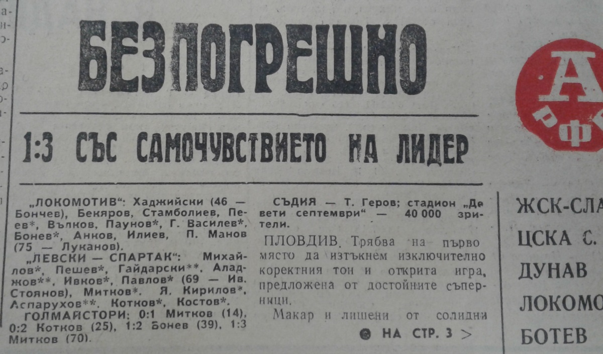 «Локомотив» Пловдив - «Левски-Спартак» София - 1:3