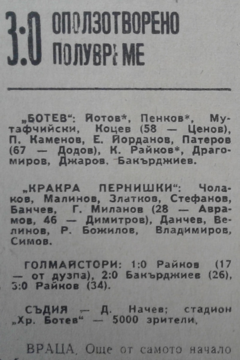 «Ботев» Враца - «Кракра-Пернишки» Перник - 3:0