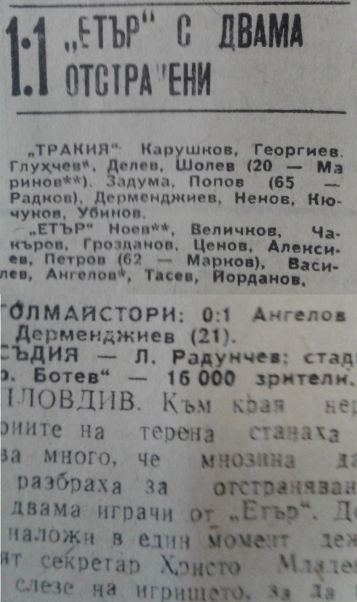 «Тракия» Пловдив - «Этыр» Велико-Тырново - 1:1
