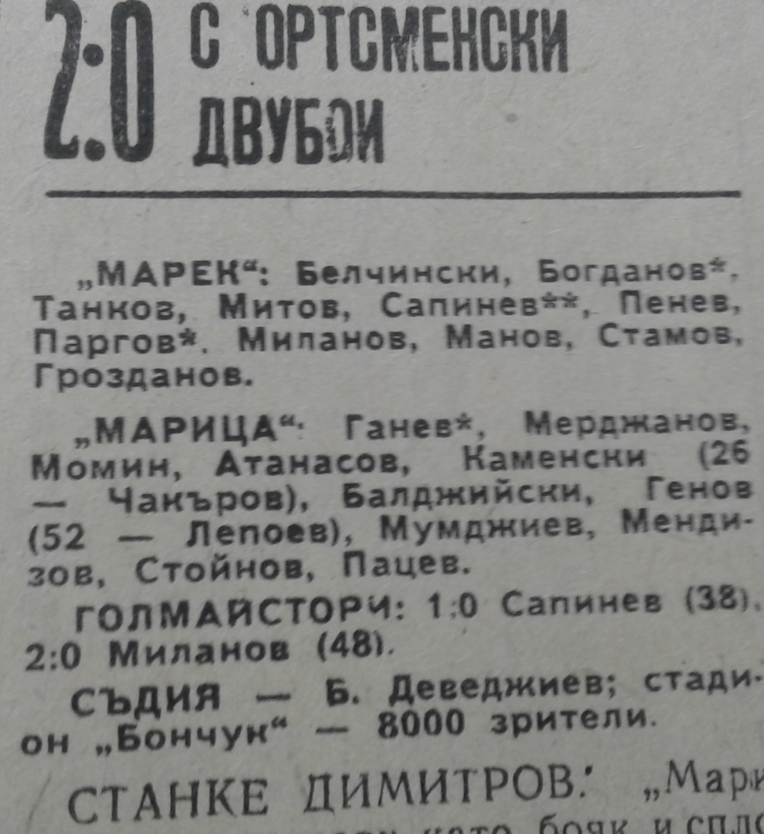 «Марек» Станке-Димитров - «Марица» Пловдив - 2:0