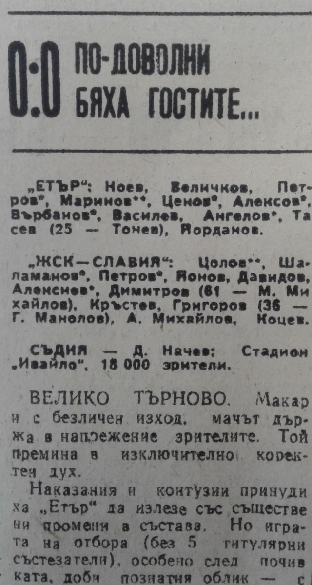 «Этыр» Велико-Тырново - «ЖСК Славия» София - 0:0