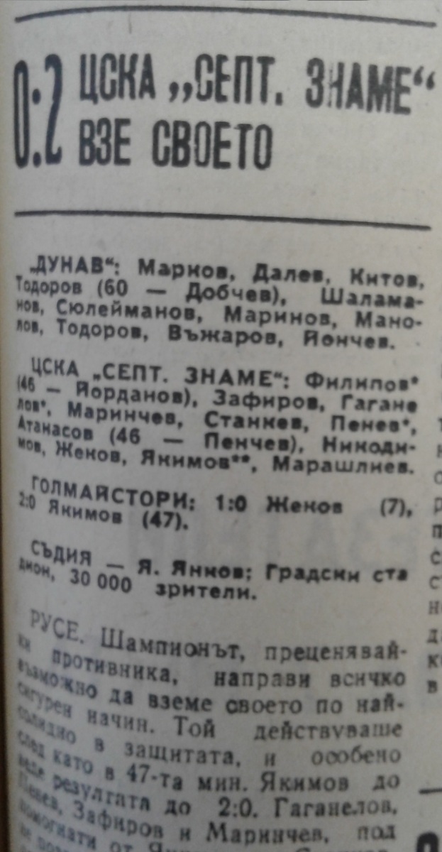 «Дунав» Русе - «ЦСКА Септемврийско Знаме» София - 0:2