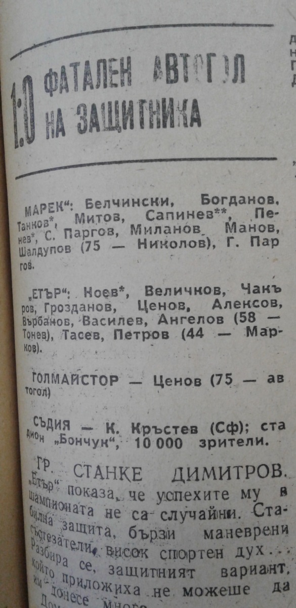 «Марек» Станке-Димитров - «Этыр» Велико-Тырново - 1:0