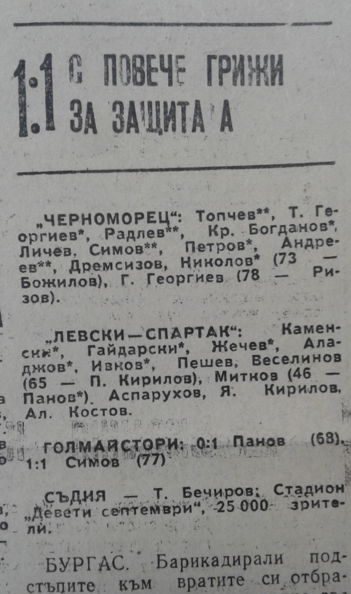 «Черноморец» Бургас - «Левски-Спартак» София - 1:1
