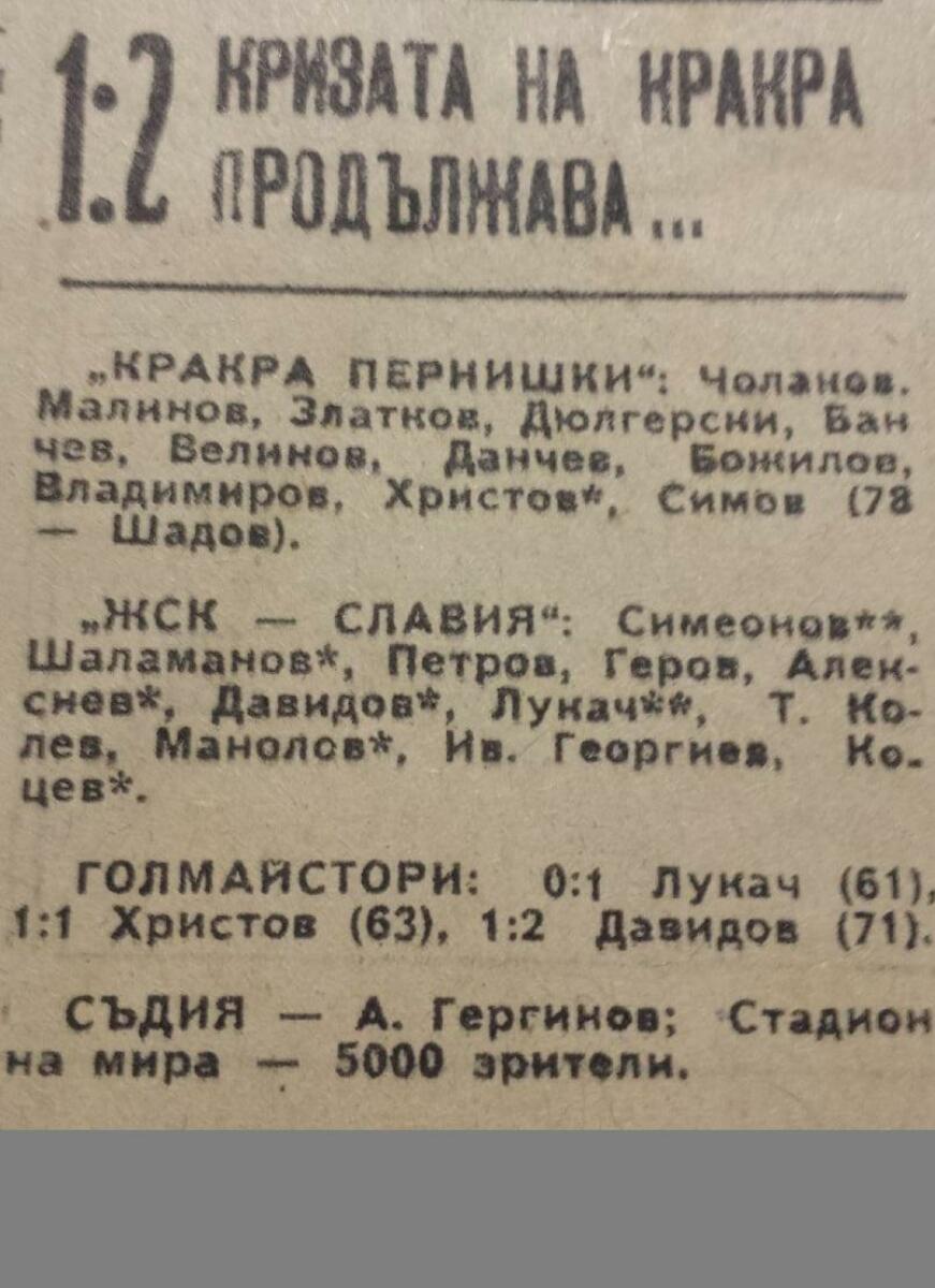 «Кракра-Пернишки» Перник - «ЖСК Славия» София - 1:2