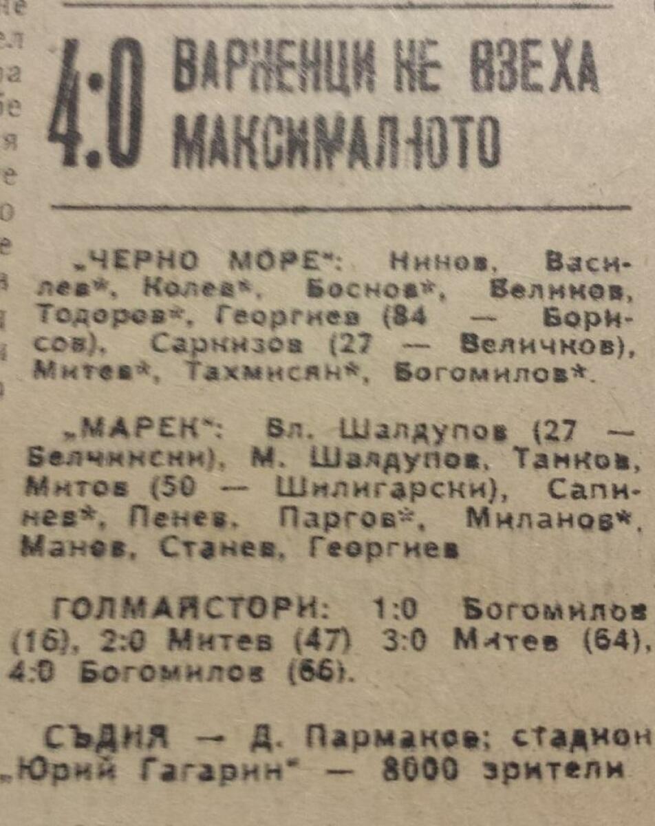 «Черно море» Варна - «Марек» Станке-Димитров - 4:0