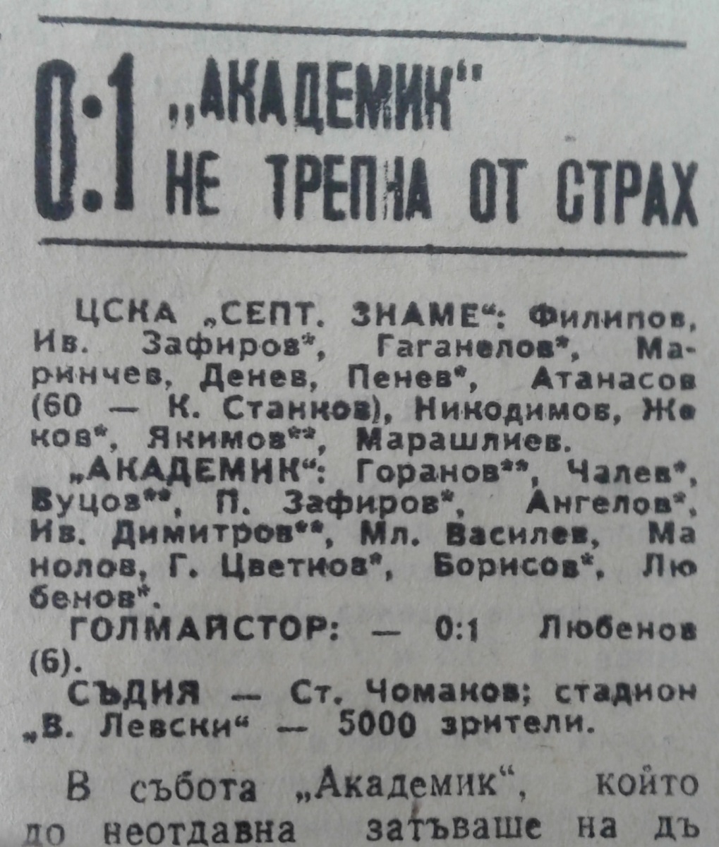 «ЦСКА Септемврийско Знаме» София - «Академик» София - 0:1