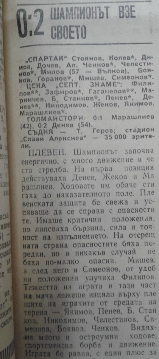 «Спартак» Плевен - «ЦСКА Септемврийско Знаме» София - 0:2