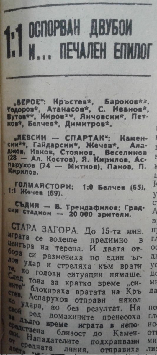 «Берое» Стара-Загора - «Левски-Спартак» София - 1:1