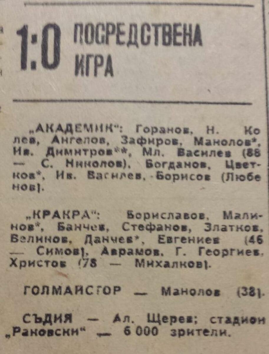 «Академик» София - «Кракра-Пернишки» Перник - 1:0
