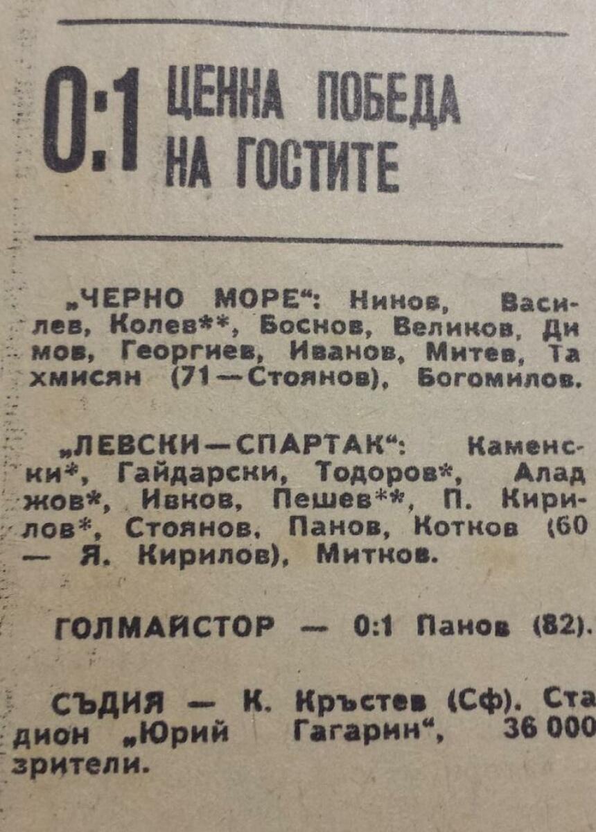 «Черно море» Варна - «Левски-Спартак» София - 0:1