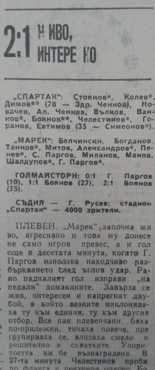 «Спартак» Плевен - «Марек» Станке-Димитров - 2:1