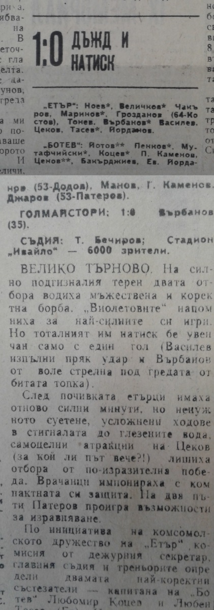«Этыр» Велико-Тырново - «Ботев» Враца - 1:0