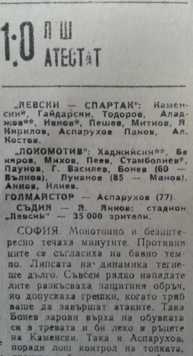 «Левски-Спартак» София - «Локомотив» Пловдив - 1:0