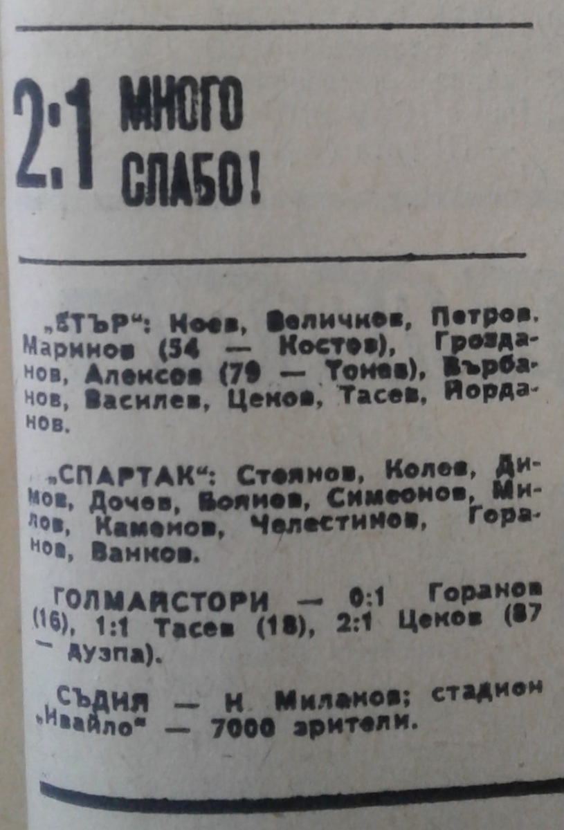 «Этыр» Велико-Тырново - «Спартак» Плевен - 2:1