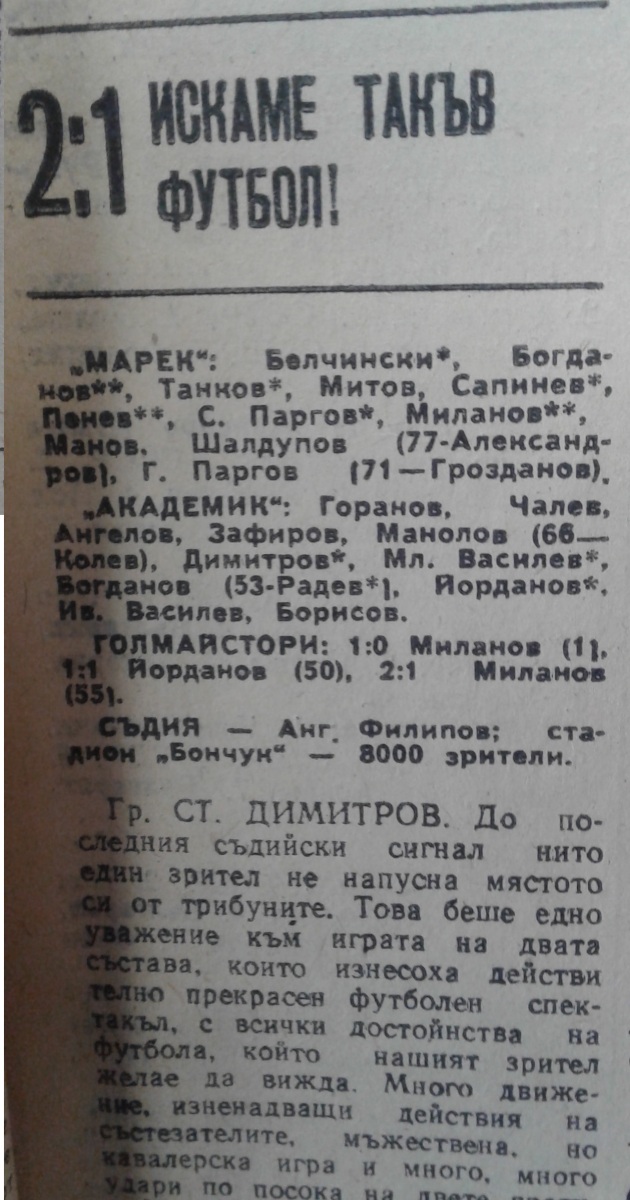 «Марек» Станке-Димитров - «Академик» София - 2:1